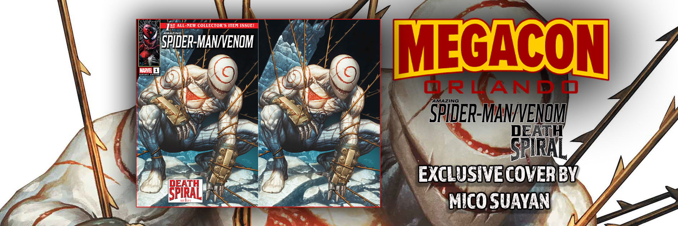 AMAZING SPIDER-MAN/VENOM: DEATH SPIRAL #1 MICO SUAYAN MEGACON EXCLUSIVE VARIANT COVERS.