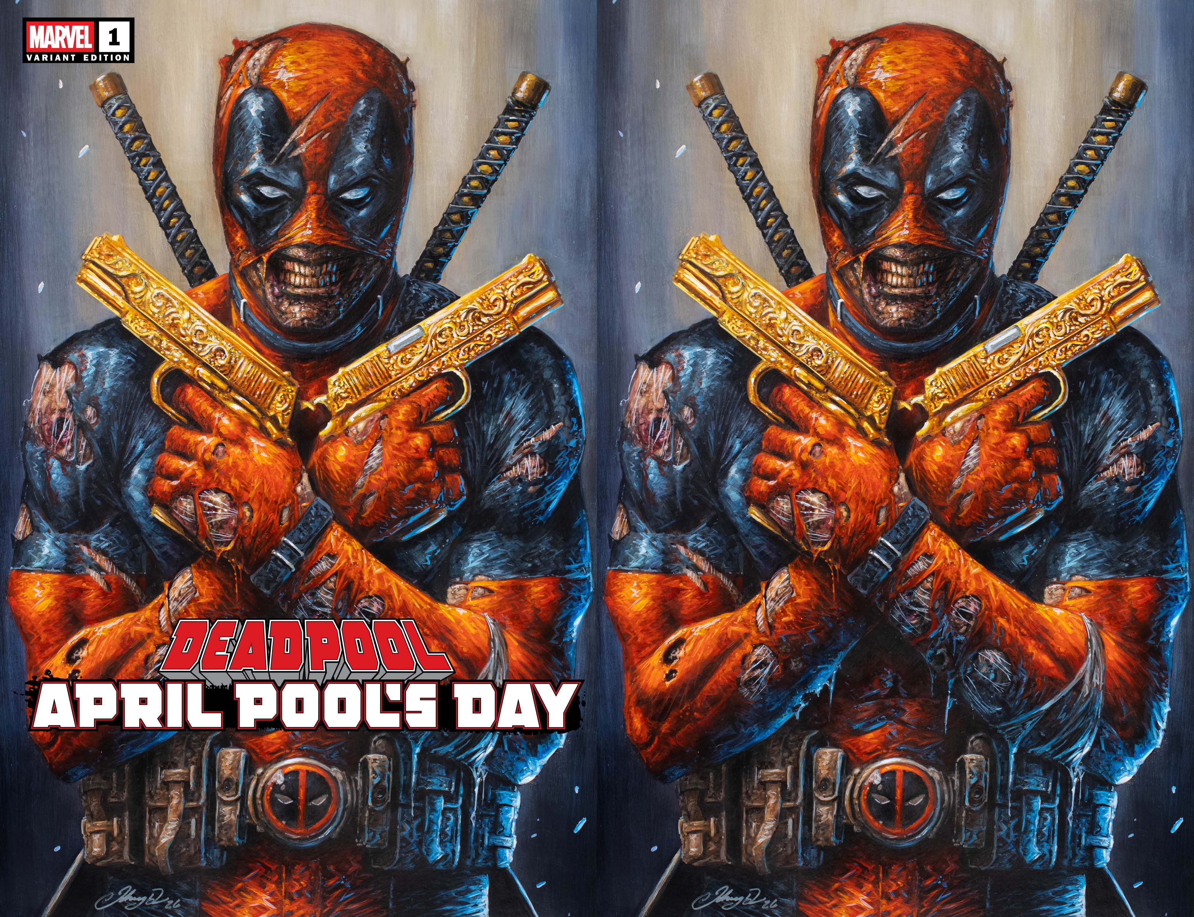 DEADPOOL APRIL POOL'S DAY #1 JOHNNY DESJARDINS EXCLUSIVE VARIANT COVERS.