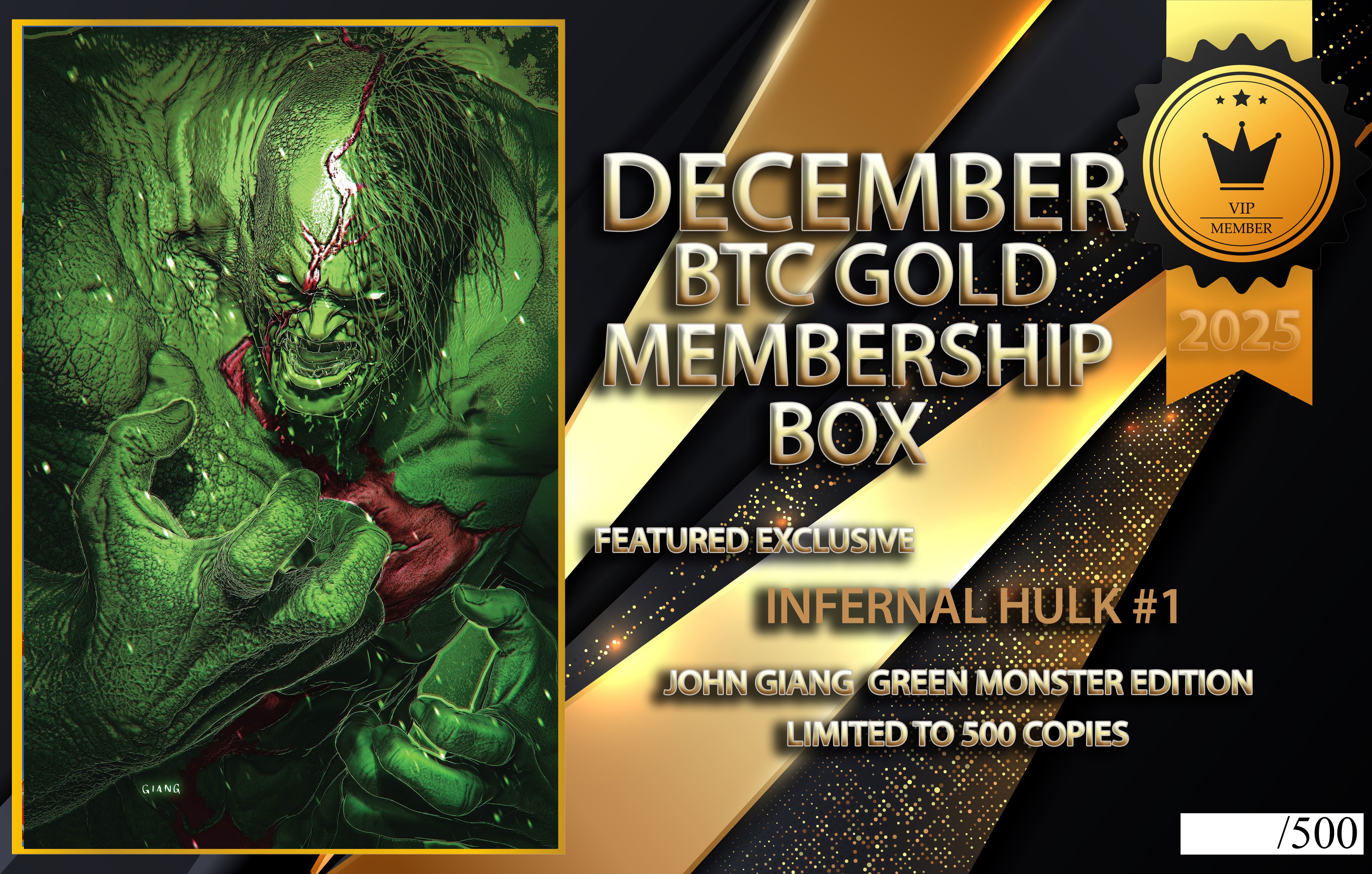 🚨🚨🚨🚨YOUR BTC GOLD MEMBERSHIP BOX EXCLUSIVE FOR DECEMBER IS INFERNAL HULK #1 JOHN GIANG GREEN MONSTER EDITION!!!🚨🚨🚨🚨