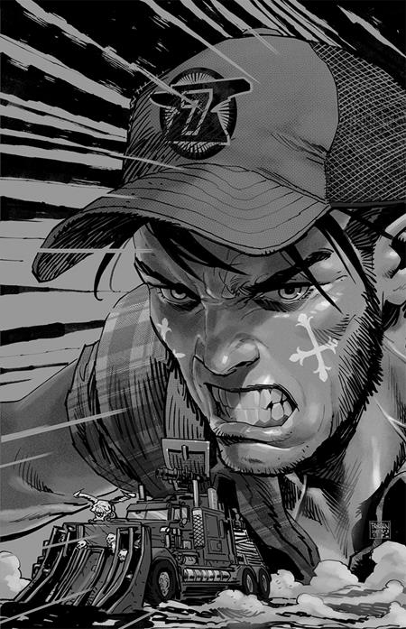 "Double-length — collects chapters 3 & 4! Post Malone’s BIG RIG. HEAVEN. HELL. HORSEPOWER. Trucker is behind the wheel. A crazy witch named Edda rides shotgun. And her sworn protector, Batu, mans the 50 Cal. One Prince of Hell is dead, but they’ve got more to go. If they can turn Leviathan to mince meat, maybe they’ll have time to regroup and deal with the spies watching their every move…before Minos’ army arrives. Created by Post Malone. Written by Post Malone and Adrian Wassel. Drawn by Barbaric co-creator and Dark Knights of Steel artist Nathan Gooden. "