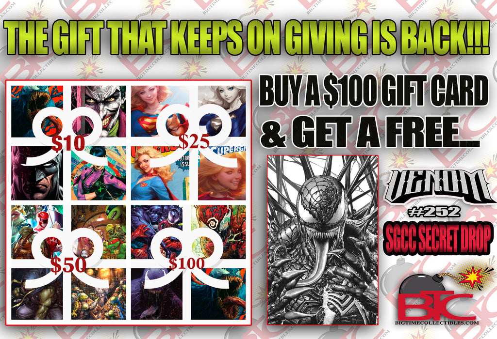 GET A FREE VENOM #252 SGCC SECRET DROP (TO BE REVEALED AT SGCC) WITH EVERY $100 GIFT CARD PURCHASED!!!