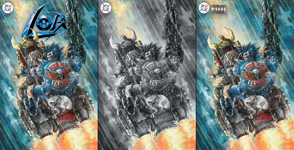SKOTTIE YOUNG AND JORGE CORONA TAKE THE MAIN MAN TO THE NEXT LEVEL! VRRRRROOOOOOMMMMMMMM! The Main Man’s back, baby! And his ride is a motorcycle that moves at the speed of sound, but only if that sound is a rippin’ guitar solo, and you better hop on before he leaves you in the dust with all the bastiches he’s fragged for money or convenience! The Eisner-nominated creative team that brought you a fantastic parable of adolescence in the Midwest, the story of an artist who embraces darkness a little too closely, and the tale of a gunslinger with too much grit to stay buried brings you a classic yarn spun in the star-kissed threads of the cosmic DC Universe. It’s a guts-soaked path from DC K.O. to the end of the universe, where Lobo is going to scratch his name and number in the Source Wall with a cool knife. Don’t miss the mayhem, special guests, or tasty, tasty continuity! Don’t you do it!